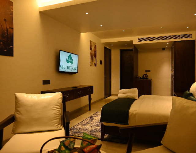 Bestowing excellent hospitality to its every category of guests, Vee Resort The Suites of Royals reflects the culture and ethos of its location. With the perfect fusion of contemporary decor in the sumptuous interiors of the resort, the resort has set the bar of services much higher than the expectations of its guests. The concept of intuitive anticipatory service makes the guest experience unalloyed. The resort welcomes and offers hospitality to guests coming from all around the world. We are focussed on delivering high quality,the best value, and superior customer service for an ultimate and intimate traveling experience.