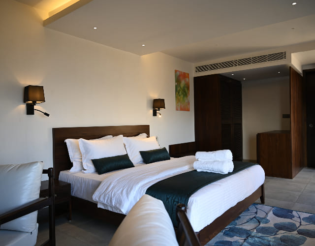 Vee Resort The Suites of Royals is a luxury resort with a stylish elegance – here contemporary style, new age amenities, and essential services combine to give travelers a harmonious experience. Our resort has all the services that are needed, and all the essentials are in place. Innovation in services served at the resort and benchmarked products soaked in the essence of its location forms the basis of our commitment to responsible luxury that creates the milestones of our resort’s value proposition.
